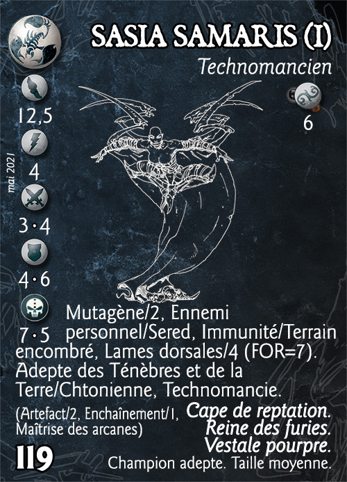 Lorsque Sasia Samaris se joint à la bataille, la Cape de Reptation se gonfle de manière menaçante, entrant en symbiose avec l'Alchimiste. C'est cette floraison carnassière qui a valu à Sasia Samaris son surnom de Rose du Désert ...