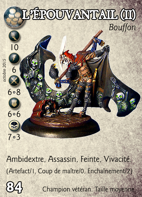 Compétences : Ambidextre, Assassin, Feinte, Vivacité. (Artefact/1, Coup de maître/0, Enchaînement/2)