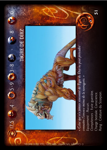 Compétences : Charge bestiale, Conscience, Furie guerrière.